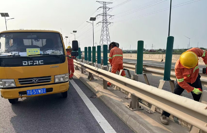 9月11日下午,市政分公司開展橋梁中分帶缺損防眩板專項維修行動,工作人員加班加點,攜手奮戰(zhàn),完成維修任務,排除安全隱患,保障過往車輛行駛安全。