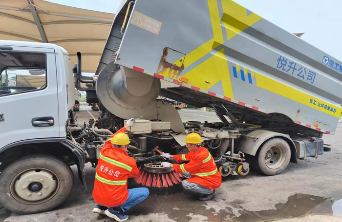 ? ? ? ?連日來,持續(xù)高溫,酷暑難耐。悅升公司車輛維修班組始終堅守崗位,他們用汗水確保公司所有作業(yè)車輛、設備設施正常運行,盡全力保障環(huán)衛(wèi)生產(chǎn)車輛的出勤率,為公司安全生產(chǎn)做好后勤保障工作。